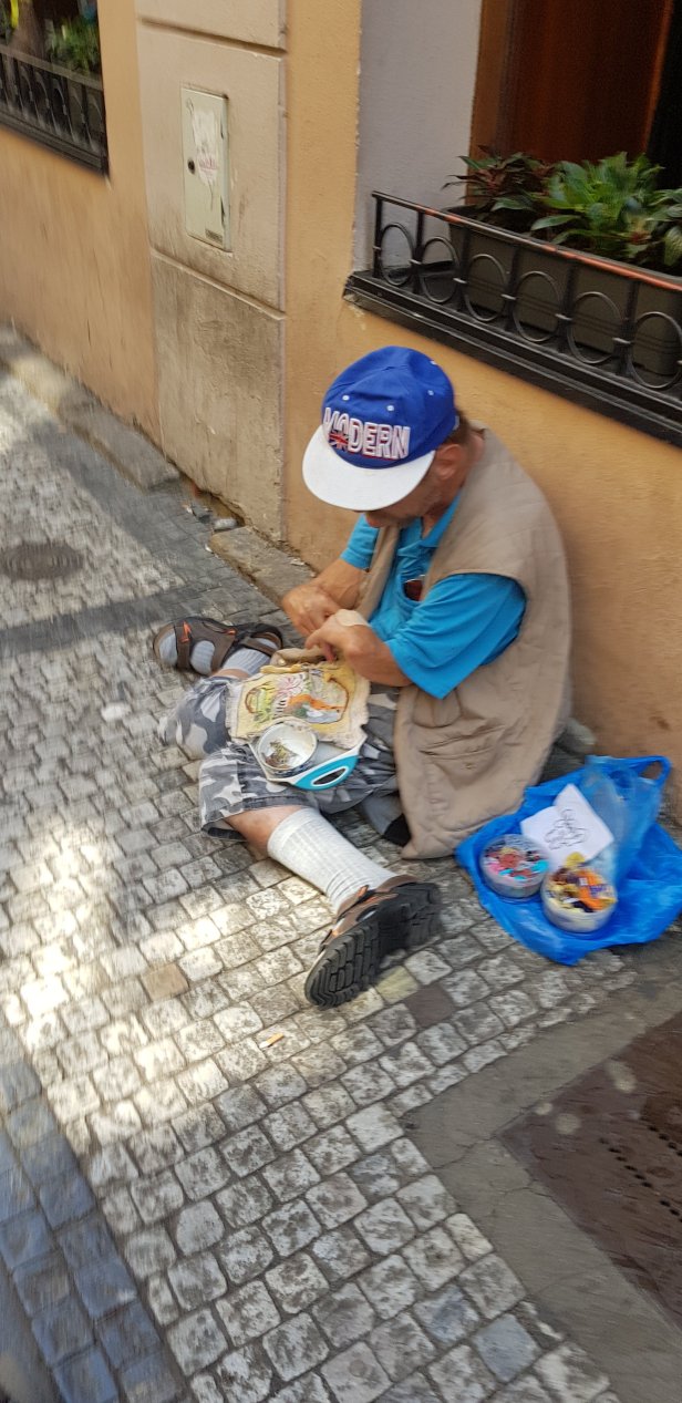 यूँ तो प्राहा (चेक गणराज्य की राजधानी) एक ख़ूबसूरत और स्वच्छ शहर है। लेकिन यहाँ कि सड़कों पर जिन लोगों को मैंने देखा, उन्होंने मुझे हैरान तो नहीं लेकिन सोचने पर मजबूर ज़रूर किया। भारत में दर्शनीय स्थानों, धार्मिक स्थलों आदि के पास भीखमंगो (भिखारियों) से आपका वास्ता अवश्य पड़ा होगा। भारत के भीखमंगे आमतौर पर राहगीरों से भीख मांगने के लिए, बहुत मिन्नतें करते हैं। नौबत यहाँ तक आ जाती है कि पैसे लेने के लिए हाथ-पैर तक पकड़ने लगते हैं। लेकिन प्राहा की सड़कों पर भीख माँगने का जो नायाब तरीक़ा देखा वो अपने आप में निराला ही है। प्राहा की सड़कों पर चहलकदमी करते हुए आपको अचानक कोई आदमी दिखाई देगा जो दंडवत प्रणाम की मुद्रा में सड़क पर लेटा होगा। आँखें नीची और उसका चेहरा आपको स्पष्ट नहीं दिखेगा। सिर के सामने एक टोपी पड़ी होगी जिसमें चंद सिक्के नज़र आएंगे। राहगीर अपनी मर्ज़ी से टोपी में पैसे डाल सकते हैं। जब यह दृश्य मैंने पहली दफ़ा देखा तो कुछ समझ नहीं पाया। लेकिन थोड़ी देर में बात समझ में आई कि वह व्यक्ति भीख माँग रहा है। एक ख़ास बात और नज़र आई कि कई भीखमंगो के साथ उनका एक पालतू कुत्ता भी लेटा दिखाई दिया। भीखमंगे राहगीरों से किसी भी तरह की बातचीत या मिन्नतें नहीं करते हैं। लेकिन उनका इस तरह से झुककर और टोपी फैलाकर भीख देने का आग्रह करना ही यहाँ के हिसाब से बहुत शर्मनाक है। कहना यह है कि धनियों के देश में कोई व्यक्ति ऐसा क्यों करेगा यदि उसे पैसे की दरकार न हो। शायद यही वज़ह है कि इस प्रकार से दिन भर भीख माँगकर कई लोगों का पेट पलता है। रोटी के लिए आदमी क्या न कर गुज़रे, भला कमर ही क्यों न अकड़ जाए।