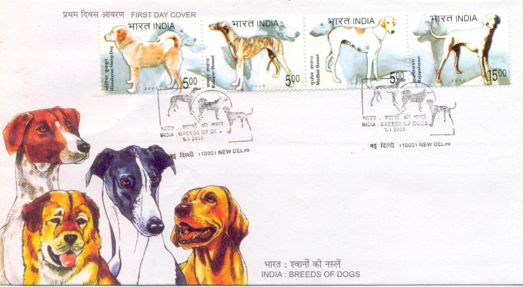 On 9 January 2005, four commemorative postage stamps were issued by India Post (Government of India) for four indigenous breeds of Indian dogs i.e. Himalayan Sheepdog, Rampur Hound, Mudhol Hound and Rajapalayam.
