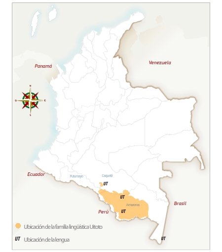 The Witoto language speakers, also known as Huitoto, Witoto Murui, Witoto Minïca, and Witoto Muinane, live in southern Colombia. They inhabit various regions such as the Cara-Paraná rivers (Mïnïca dialect), Igará-Paraná rivers, Caquetá, and Putumayo (Minica dialect), as well as the Caquetá above Arraracuyara (Nïpode dialect). Witoto community suffered greatly during the rubber boom at the beginning of the 20th century, primarily due to the cruel actions perpetrated by the rubber company Casa Arana. As a result, they became one of the most severely affected indigenous groups in the Amazon region. Today, the Witoto language in Colombia is endangered, with an estimated ethnic population of around 6,245 individuals (while larger populations exist in Peru and Brazil).